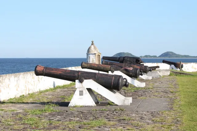 O contraste entre a arquitetura militar rígida e a exuberância da Mata Atlântica ao redor cria um cenário cinematográfico, perfeito para quem busca cultura, história e paisagens naturais em um único passeio.